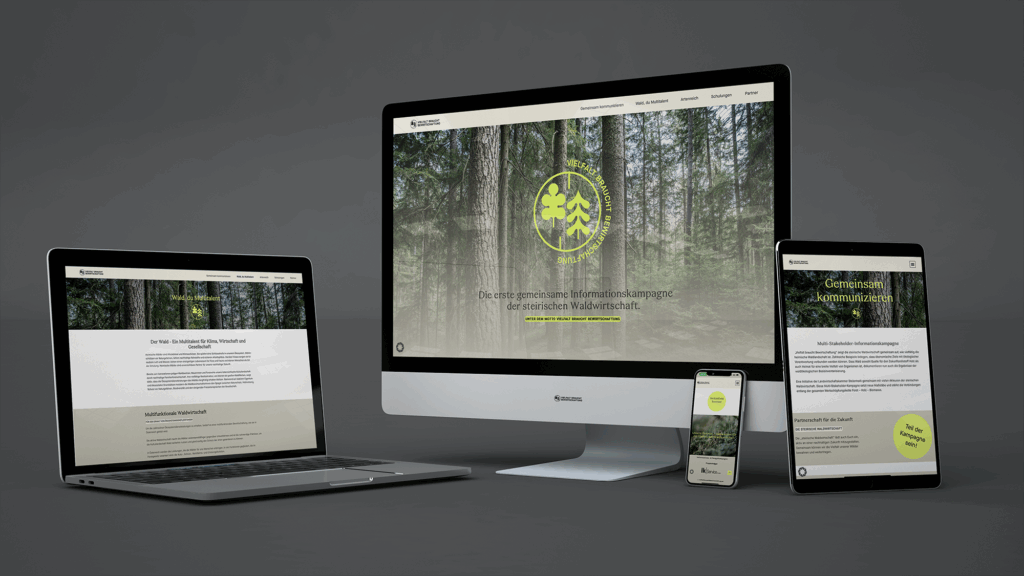 For this project, I designed a website based on a given corporate identity and a predefined structure. The site was created for an information campaign about the forest as a multi-talented resource.